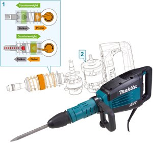 HM1214C Bontókalapács![]() 1. Vibráció csökkentése Az AVT, a rezgés-csökkentő technológia, arra használja a beépített ellensúlyokat, hogy jelentősen lecsökkentse a káros rezgéseket fúró-, véső- vagy bontókalapács használata esetén.